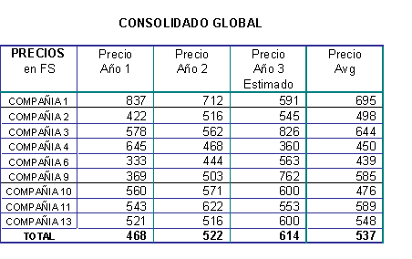 A continuación evolución de precios en el mercado, por grupo comercializador, consolidado global en Francos Suizos. Como podrá verse, en general, los precios han evolucionado hacia el alza.