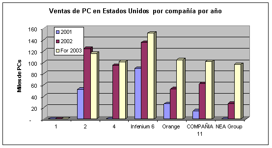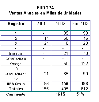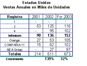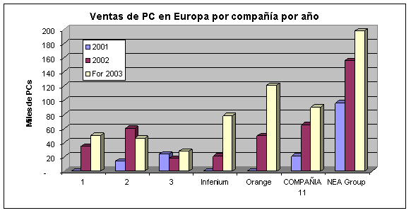 La suma de los tres mercados, Unión Europea, Brasil y Estados Unidos conformaba medio millón de PCs en el año 2,001. Al finalizar el 2,002, éste se había duplicado a niveles de 1 Millóne de PCs, esperándose un crecimiento del 50% para el 2,003.